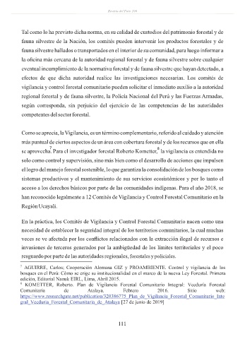 se aprovecha. Para el investigador forestal Roberto Kometter, la vigilancia es entendida no