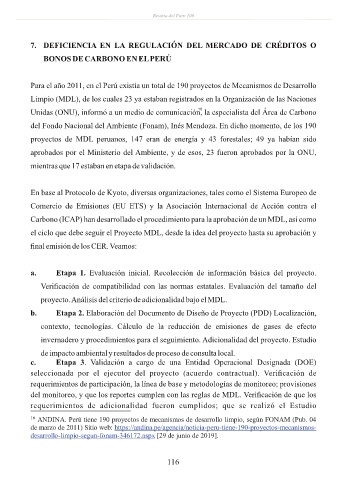 proyectos de MDL peruanos, 147 eran de energía y 43 forestales; 49 ya habían sido