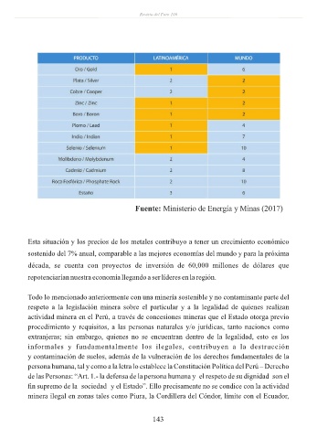 minera ilegal en zonas tales como Piura, la Cordillera del Cóndor, límite con el Ecuador,