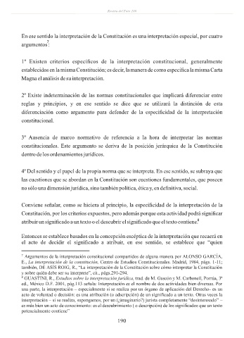 En ese sentido la interpretación de la Constitución es una interpretación especial, por cuatro