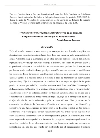 Revista del Foro 106 “Vivir en democracia implica respetar el derecho de las personas a elegir estilos de vida con los que no estoy de acuerdo” Daniel Gamper Sanchse. Introducción 228