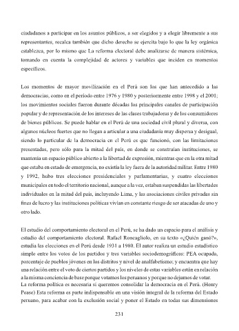estudio del comportamiento electoral. Rafael Roncagliolo, en su texto «¿Quién ganó?»,