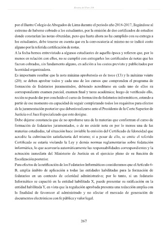 por el Ilustre Colegio de Abogados de Lima durante el periodo año 2016-2017, llegándose al