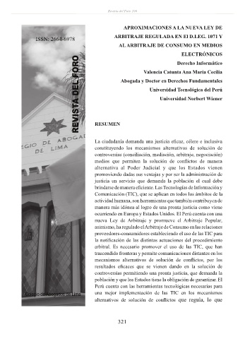 ISSN: 2664-6978 ARBITRAJE REGULADA EN El D.LEG. 1071 Y