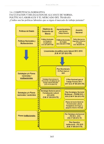 Revista del Foro 106 3.6. COMPETENCIA NORMATIVA FACULTACION Y DELEGACION DE ALCANCE DE NORMA. POLÍTICAS LABORALES Y EL MERCADO DEL TRABAJO ¿Cuáles son las políticas laborales que se rigen el mercado de trabajo peruano? 365