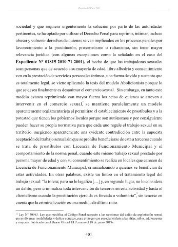 Expediente N° 01815-2010-71-2001), el hecho de que las trabajadoras sexuales