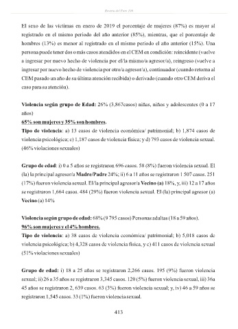 violencia psicológica; b) 4,328 casos de violencia física, y c) 411 casos de violencia sexual