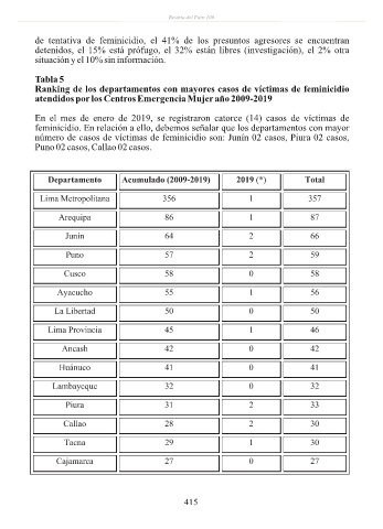 feminicidio. En relación a ello, debemos señalar que los departamentos con mayor