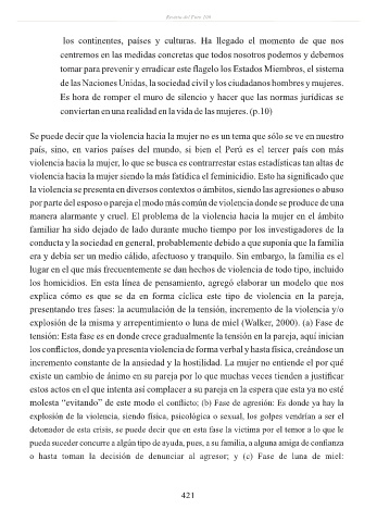 o hasta toman la decisión de denunciar al agresor; y (c) Fase de luna de miel: