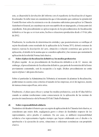 sujeto fiscalizado como resultado de la aplicación de la Norma XVI, deberá contener de