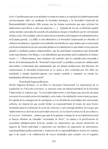 socio. Consideramos que si en un futuro se toma en cuenta y se regula la sociedad unipersonal