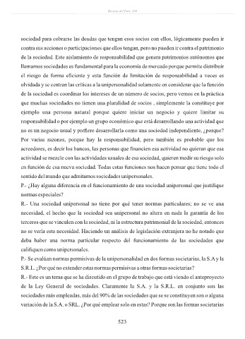 P.- Se evalúan normas permisivas de la unipersonalidad en dos formas societarias, la S.A y la
