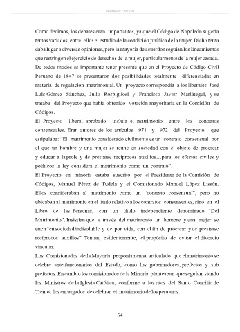 materia de regulación matrimonial. Un proyecto correspondía a los liberales José