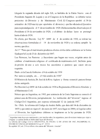 el Divorcio, los legisladores chilenos se inspiraron en la ley peruana de 1920,