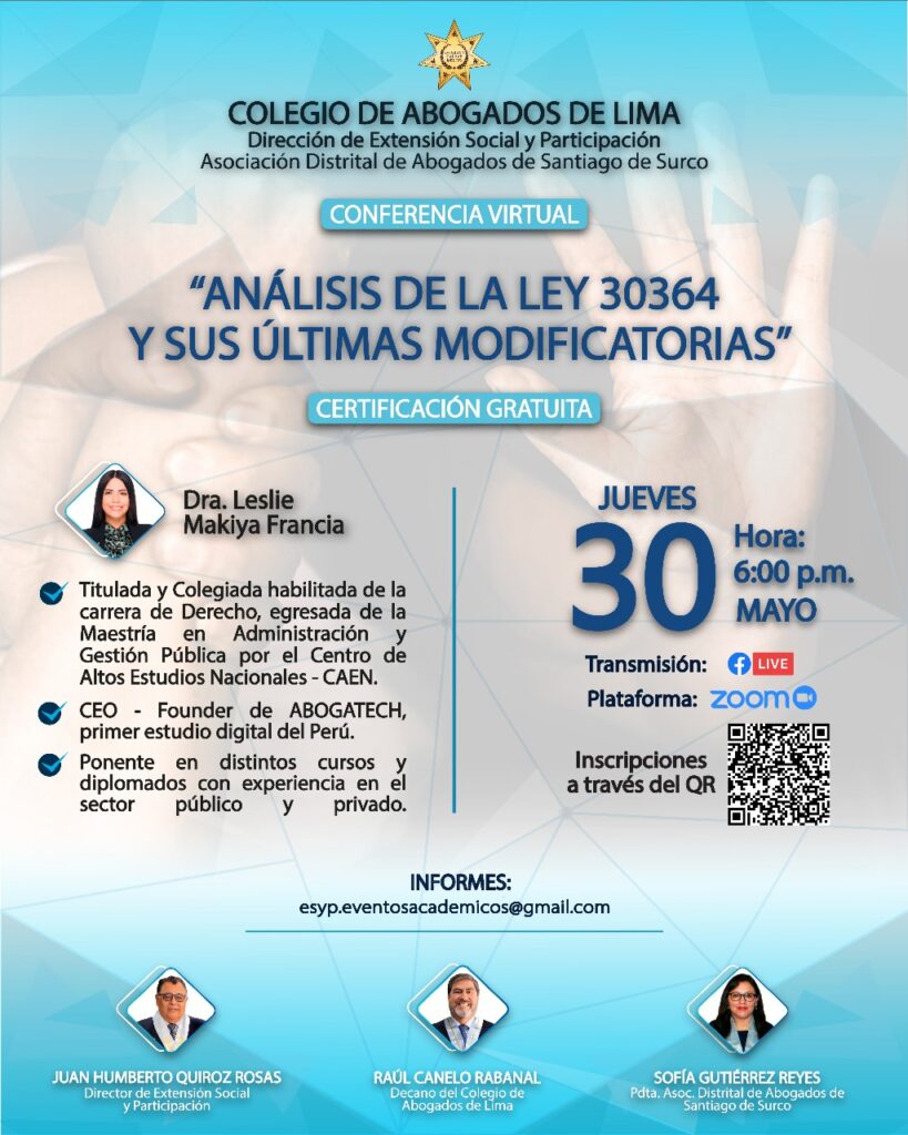 Conferencia Virtual «Análisis de la Ley 30364 y sus Últimas Modificatorias»