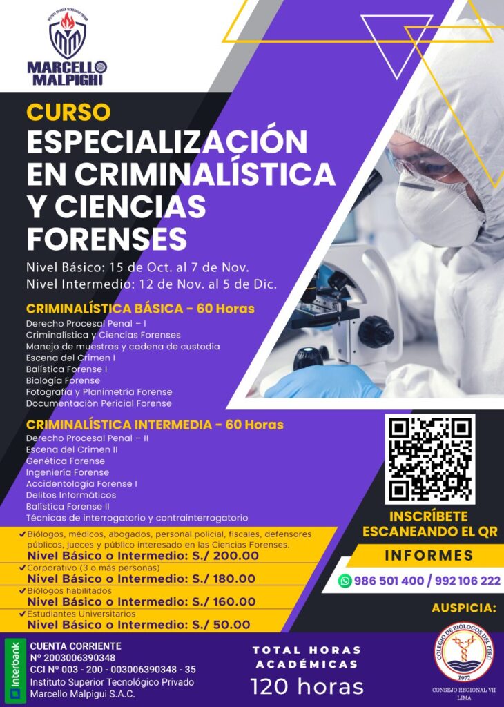 El Instituto Superior Tecnológico Privado Marcello Malpigui S.A.C., con el auspicio del Colegio de Biólogos del Perú – Consejo Regional VII Lima, te invita a participar en el curso.