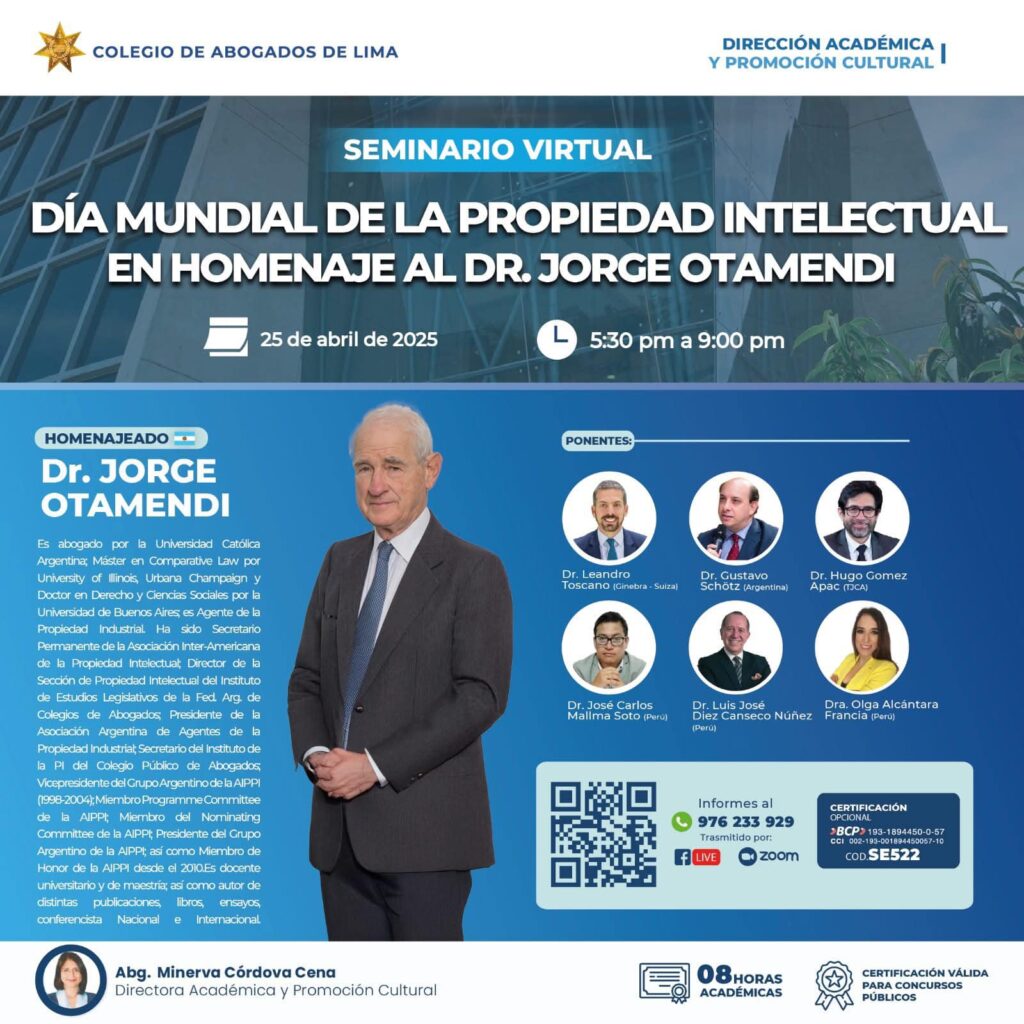 🔵 Seminario CAL: Conoce más en este Seminario del "Día Mundial de la Propiedad Intelectual en Homenaje al Dr. Jorge Otamendi", realizado por la Dirección Académica y Promoción Cultural del CAL.