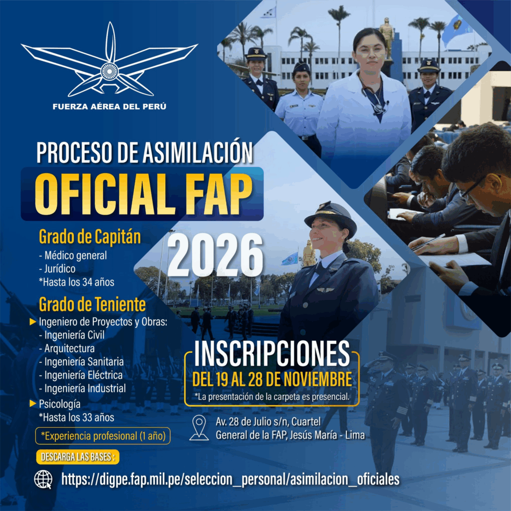 Ya están abiertas las inscripciones para el Proceso de Asimilación de Oficiales FAP 2026.