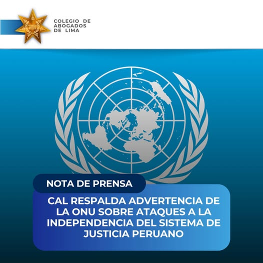 COLEGIO DE ABOGADOS DE LIMA RESPALDA ADVERTENCIA DE LA ONU SOBRE ATAQUES A LA INDEPENDENCIA DEL SISTEMA DE JUSTICIA PERUANO
