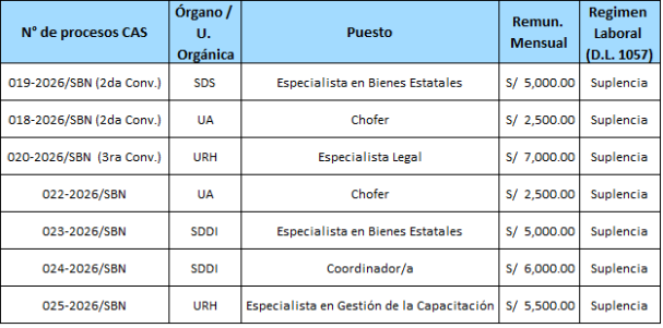 convocatorias a través del link https://www.sbn.gob.pe/convocatorias-cas-sbn/2026 a fin de que