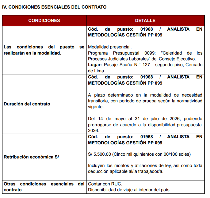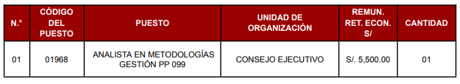 posición CAS, bajo el Decreto Legislativo N.° 1057 (CAS), conforme se detalla a continuación: