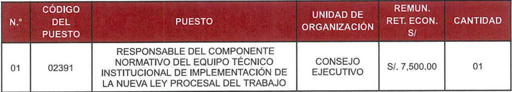 El Comité de Selección de Personal Ad Hoc del Consejo Ejecutivo del Poder Judicial pone en conocimiento el proceso de selección de personal que se llevará a cabo para cubrir una (01) posición CAS, bajo el Decreto Legislativo N.° 1057 (CAS), conforme se detalla a continuación: